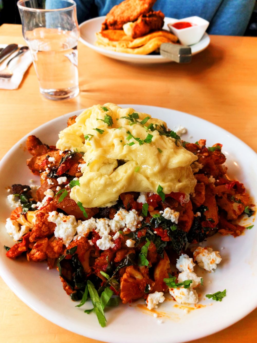 I had another Bloody Mary here at Bijou and it was good, but not as good as the one at Cheryl’s. 🙂 And then I learned about harissa. So, harissa is this amazing North African/Middle Eastern paste/sauce that is so delicious and made with roasted peppers, cumin, mint and so much more. Now, take that and mix it with roasted potatoes, cauliflower and kale (because you’re in Portland and it’s kale), and you have the best breakfast dish I’ve eaten in who knows how long. Bijou Cafe wins for the best breakfast dish for now… until we come back to Portland.