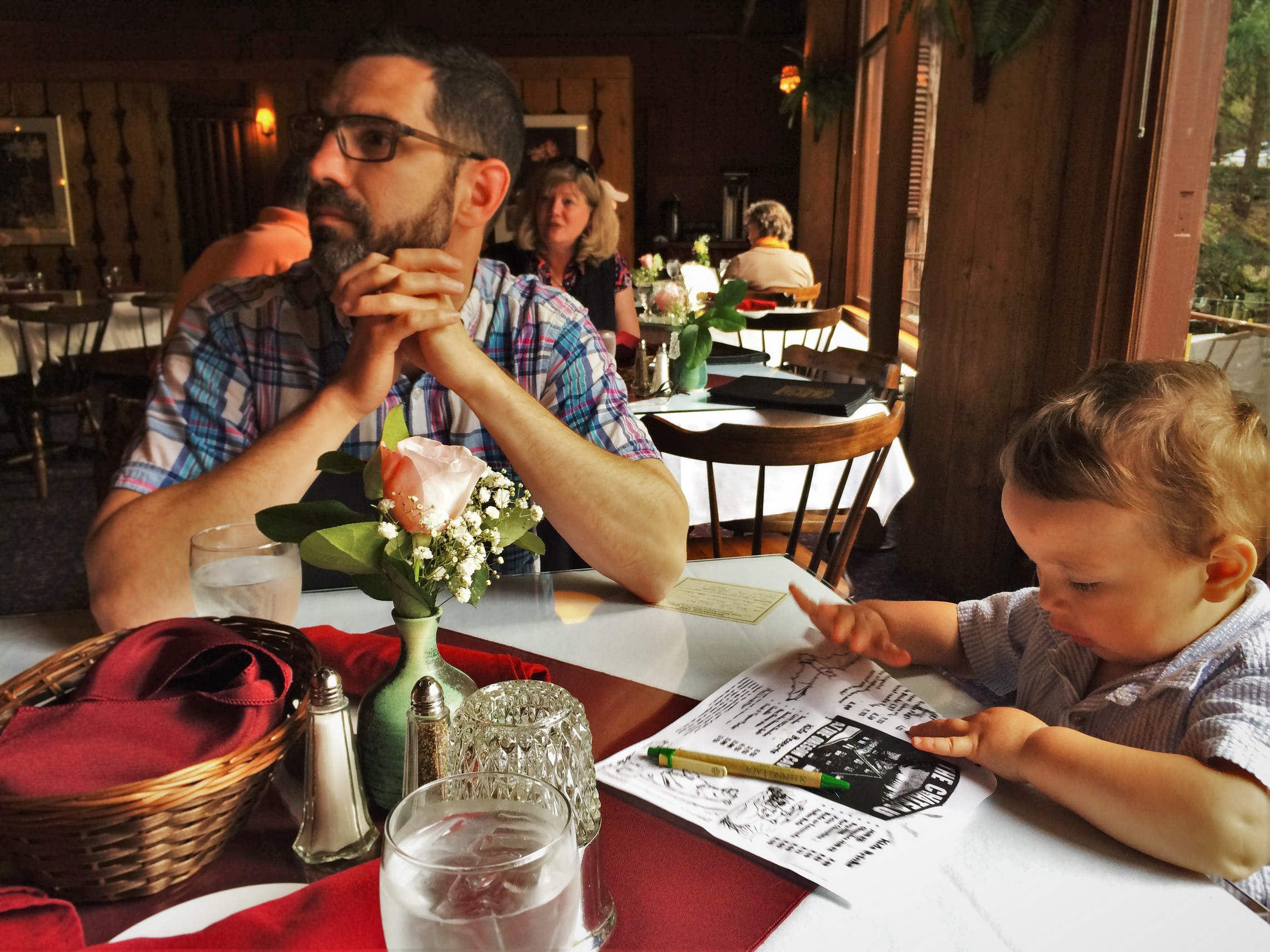 Chris Taylor and TinyMan in Oregon Caves Chateau Dining Room