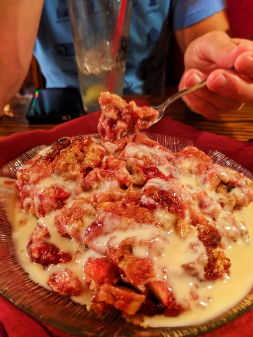Another thing about “supper club” dining that we’d heard about were the desserts. OMG. The kids were good with ice cream (another win for our youngest!) but we dug into something much more decadent: cherry bread pudding with a white chocolate sauce. Absolutely delicious and totally nothing we needed with our meal. We slept so good that night.