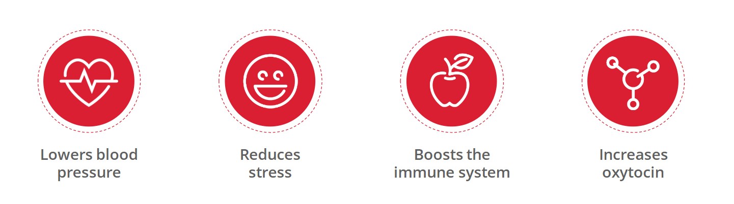Note: to be scientific, hugging lowers blood pressure, reduces stress, boosts the immune system (the tummy area produces hormones), and increases oxytocin. In addition to hugging creating a stronger connection between a family, these other side effects promote actual physical health.