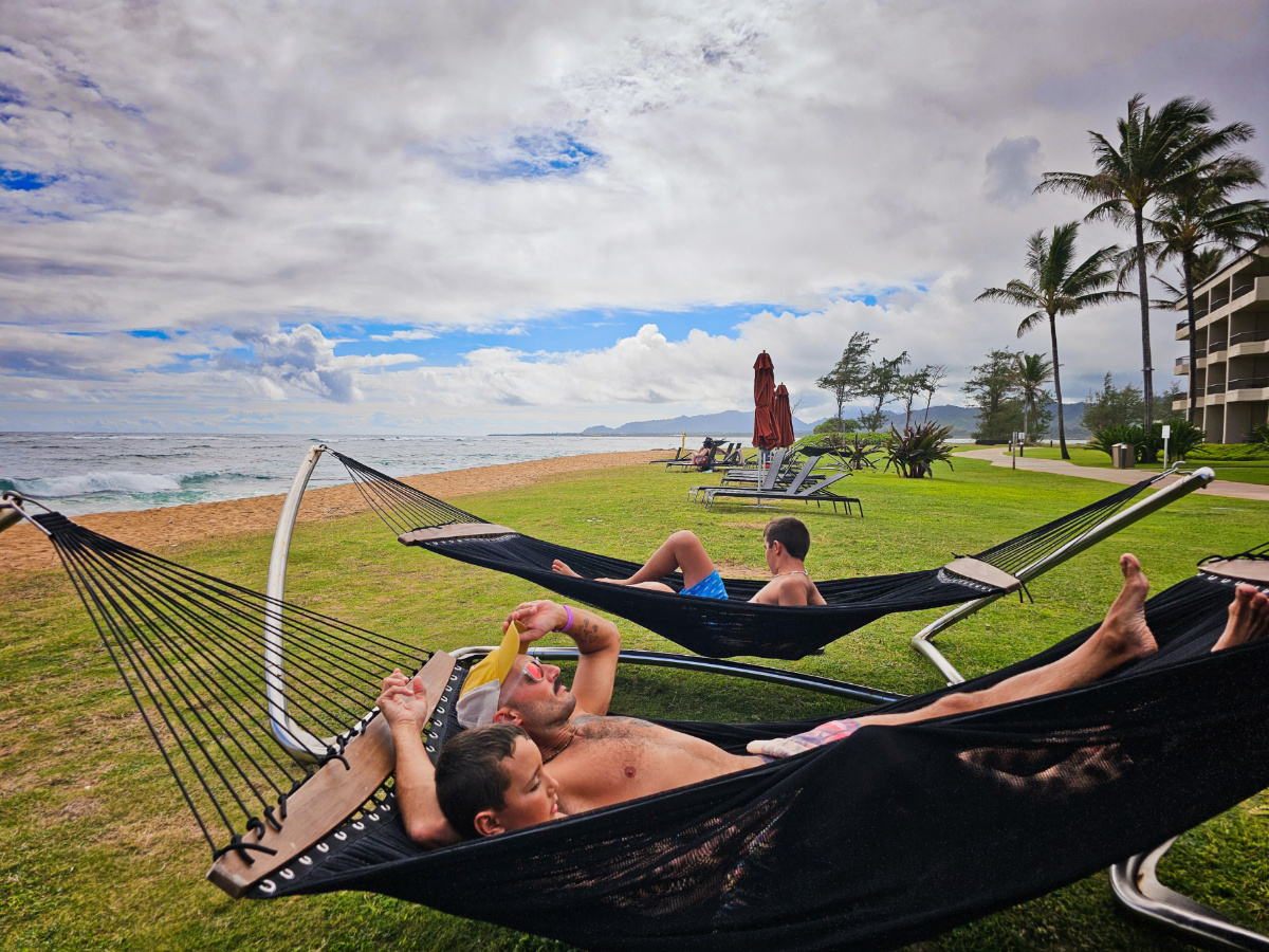 Taylor Family in hammocks at Sheraton Coconut Beach Resort Kapaa Kauai 1