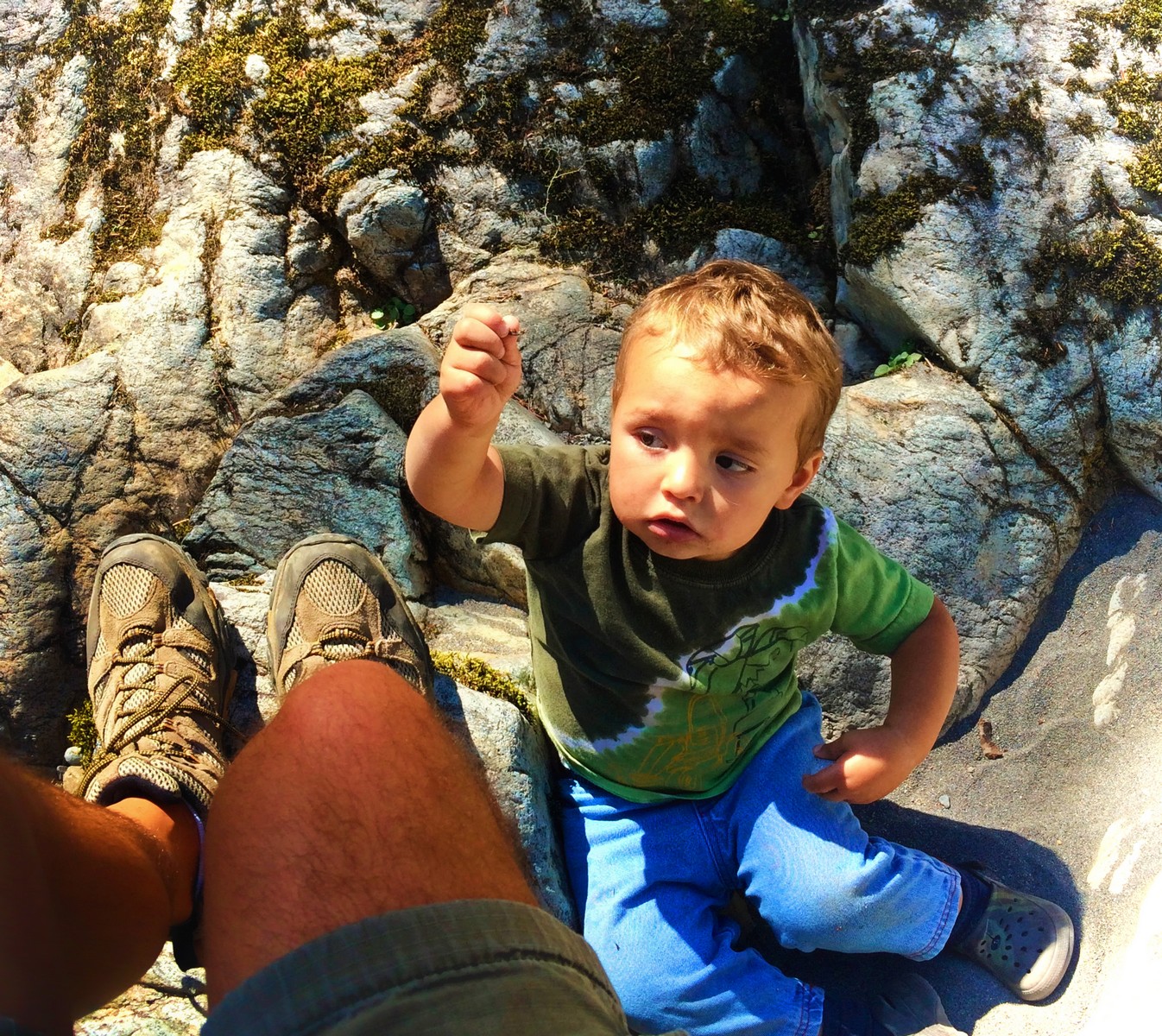 TinyMan playing on rocks at Silver Falls Mt Rainier National Park 1