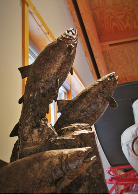 Jumping Salmon sculpture at Sleeping Lady Resort Leavenworth 2traveldads.com
