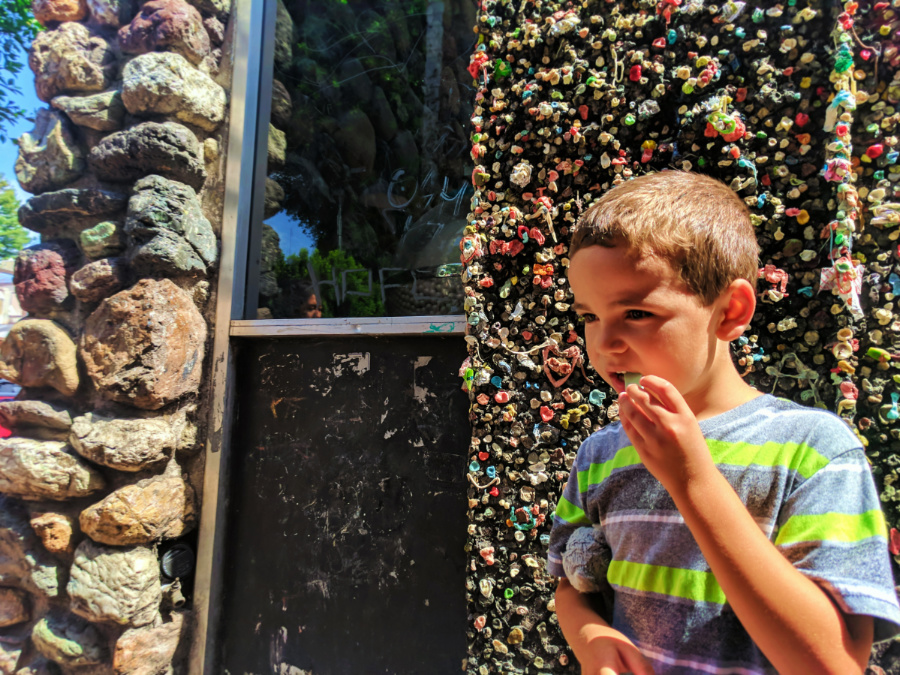 Oh!! And we almost forgot!! Can you visit or drive through San Luis Obispo without visiting the Madonna Inn? We had breakfast one day at the Copper Cafe at the Madonna Inn and loved the kitchy craziness of the property. The kids’ favorite feature was, of course, the waterfall bathroom downstairs from the steakhouse. Who doesn’t want to pee into a waterfall? Our food wasn’t mind-blowingly great, but the atmosphere was fun and ideal with kids.