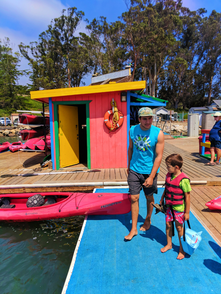You know how much we love to get out on the water for kayaking, right? Well, Morro Bay State Park was the perfect spot for it. We worked with the Kayak Shack within the Morro Bay State Park marina to head out into the bay in search of sea otters. We didn’t get to spot any of them (bummer, total fav) but we did see a sea lion, osprey and a whole pelican nesting ground. The kids loved the crazy pelican activity to start the day.