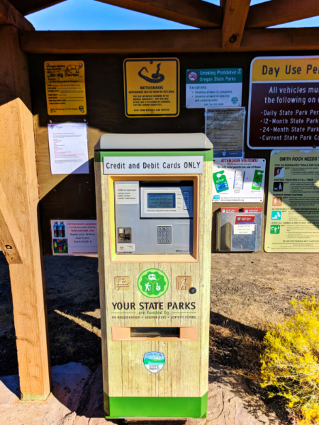 As you approach Smith Rock State Park you’ll see there are two parking areas. If you’re early enough, you should be able to park near the main trail head, but if that’s full already when you get there, there is an overflow parking area that’s also used for over-sized vehicles and buses. Both parking areas have pay stations for getting a parking pass. Get to Smith Rock nice and early for the best parking closest to your trail head. Smith Rock with kids is easiest when you can finish your hike without an extra hike to your car.