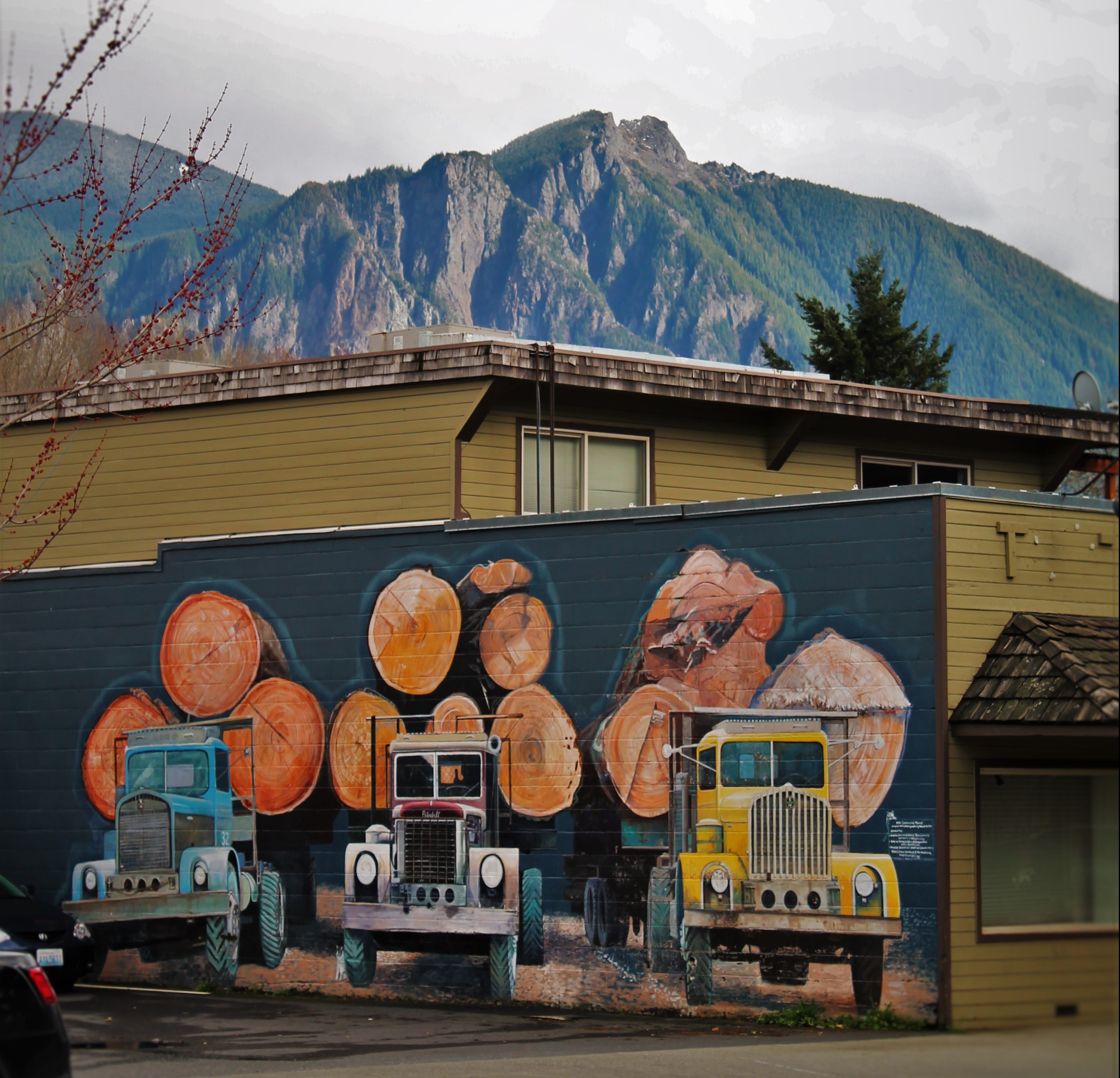 Mt Si with Logging Trucks Mural in Downtown Snoqualmie Washington 1