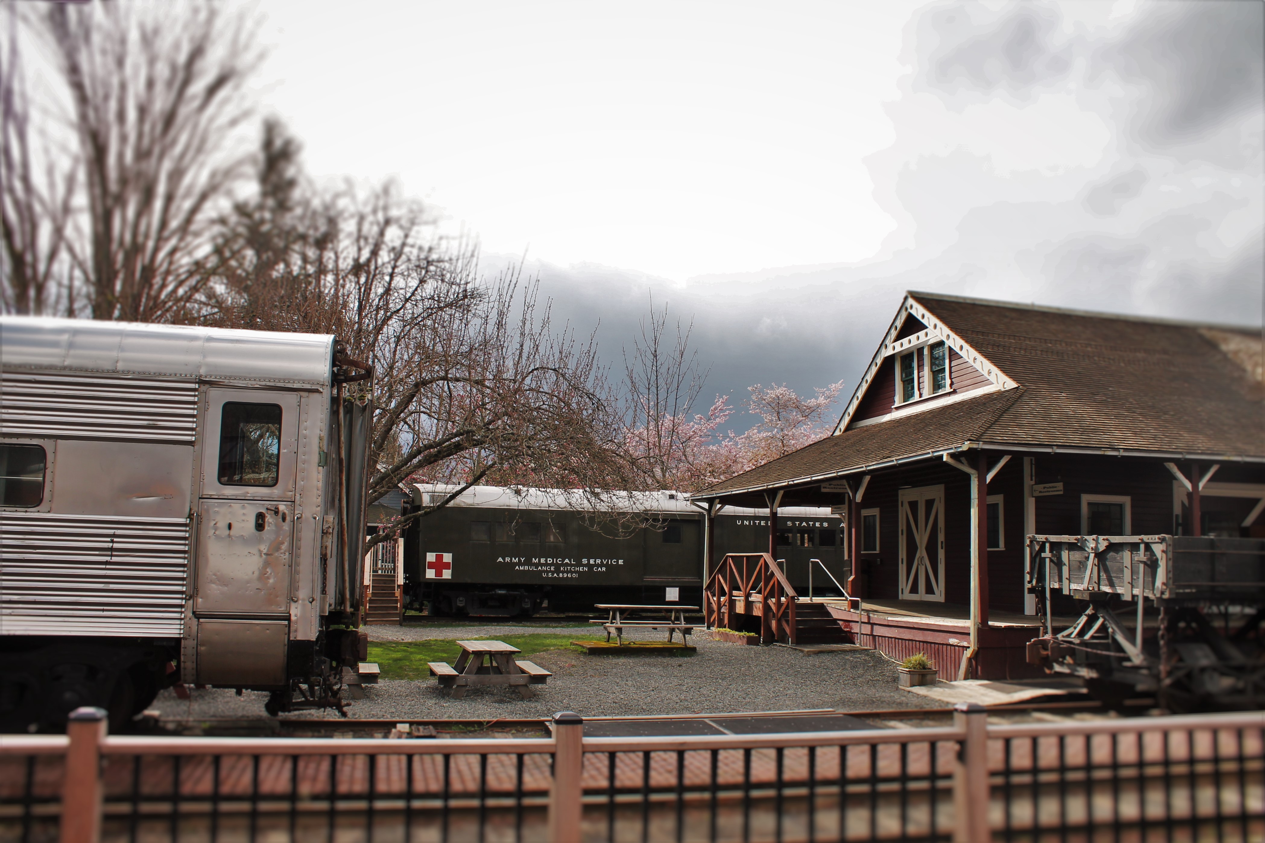 Old Snoqualmie Train Depot with Cherry Blossoms Washington 5