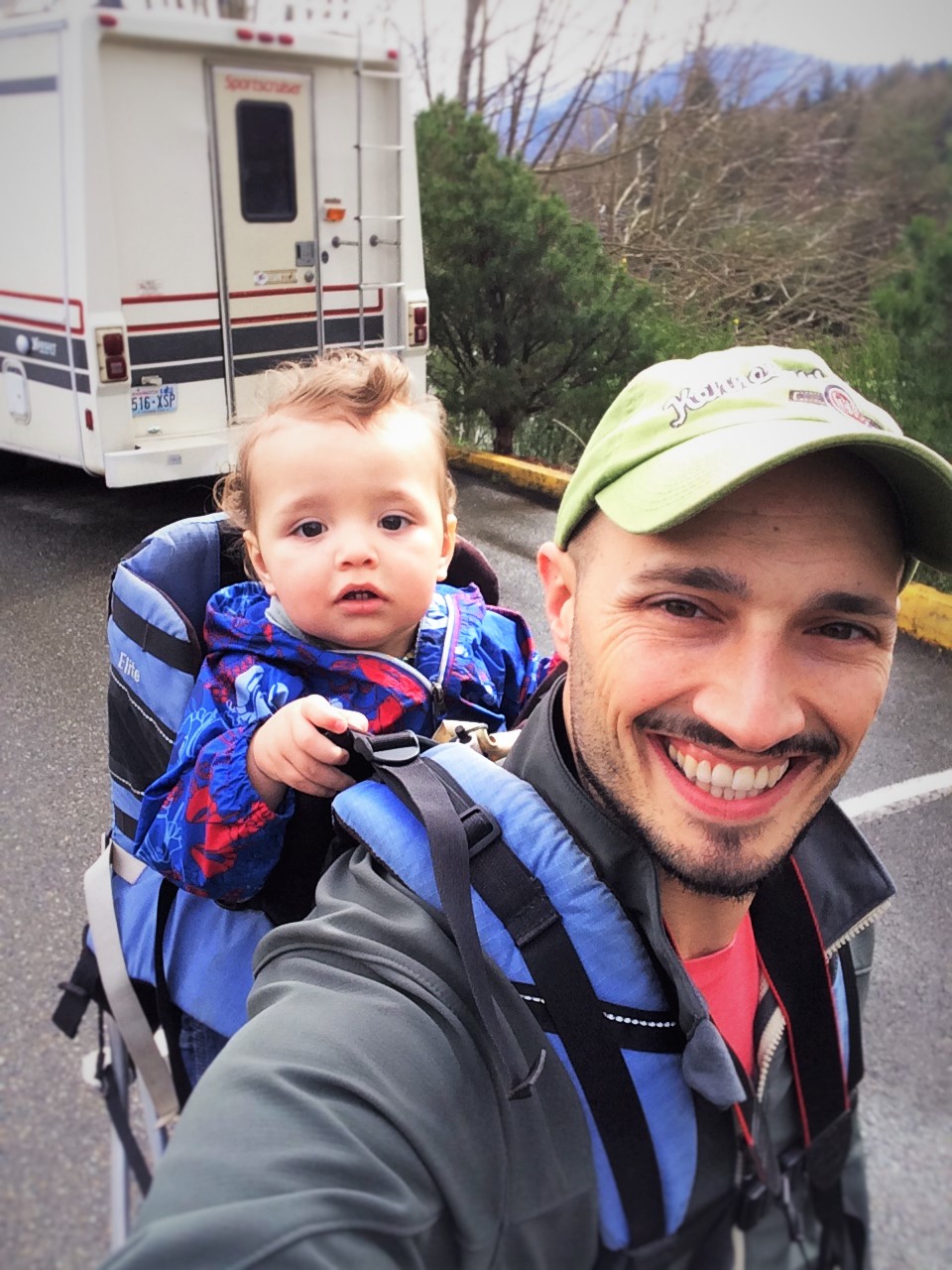 Rob Taylor and TinyMan heading to Snoqualmie Falls Washington in Winter 1