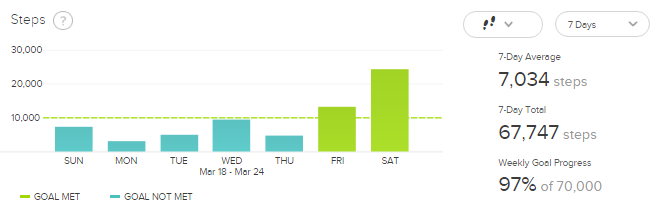 I’m just going to start here because it’s the most simple thing you can do and you won’t even realize it’s happening. If you’re a person that uses apps and equipment to track your steps throughout the day, or if you have activity goals, you’ll almost immediately see yourself meeting them. Just look at our step tracking. Crazy!!! We weren’t even thinking about it and we were killin’ it!
