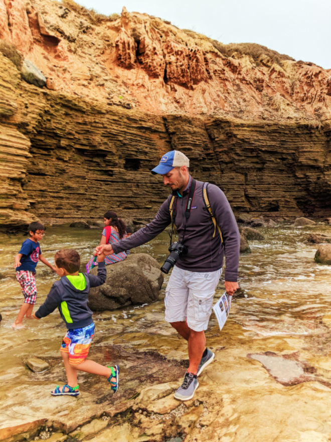 Cabrillo has two lighthouses, but only one that’s accessible. We toured it and the kids asked if we could live in a lighthouse (I wish) and then headed for the bluff to watch for whales. No gray whales today, but we did see some really cool tall ships and some vintage WWII war planes flying over (the planes, not the ships). After that we headed to the tidepools hoping to find some cool creatures, but the tide was coming in and our pools were limited. Still fun though.