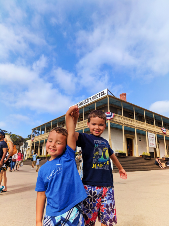 We didn’t go to Belmont Park, the vintage amusement park just off the beach, because it was totally bonkers on a sunny weekend day, but we did have a great time just playing with the kids in the sand and surf. Our boys are all about beach time, so letting the day focus on just playing and having fun was all that they needed to have their best San Diego vacation day.