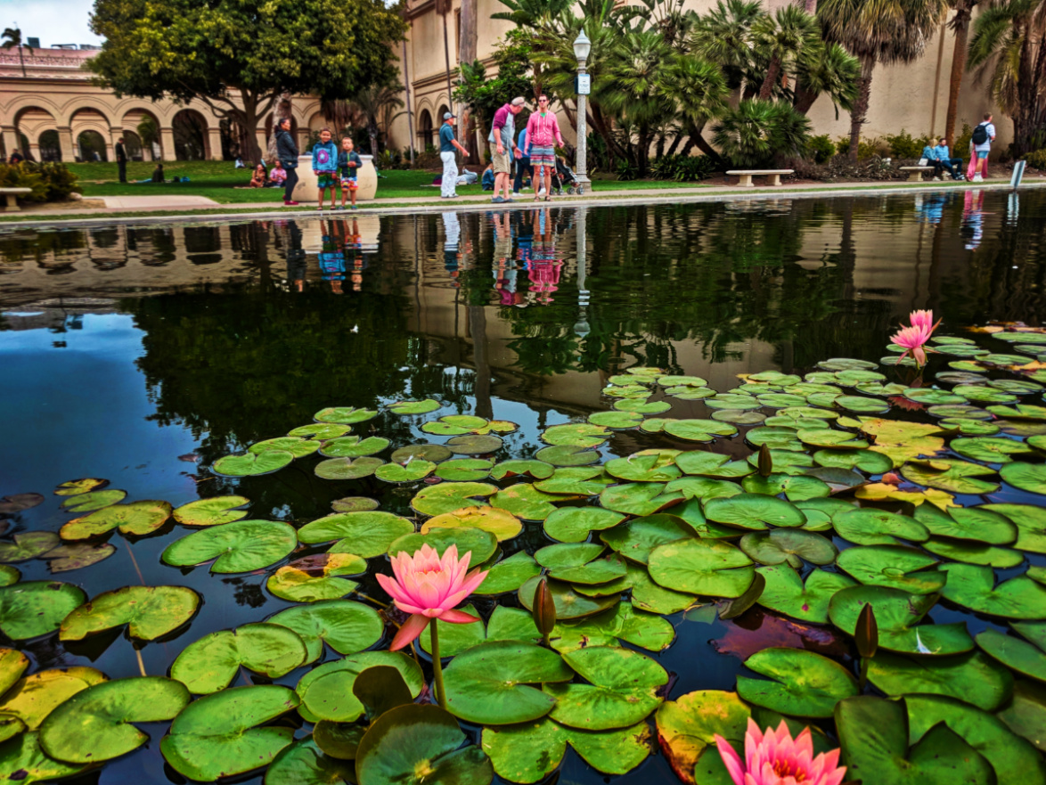 Balboa Park was a hit! We toured the conservatory and enjoyed the lily ponds, we listened to a short organ concert, did a little inner-city jungle hiking, and wandered through garden mazes. We didn’t visit the San Diego Zoo or do the Museum of Natural History (too late in the day), but we had fun just the same. The big win was the San Diego Spanish Art Village in Balboa Park. Again, too late to get to explore everything, but we enjoy some of the public art, a few shops, and the colorful setting. Next time we’ll be here much earlier for art fun.