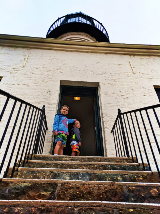You know when you’ve made the perfect summer plan and it’s totally foiled by weather? Yeah, that was us this weekend. We found some delicious breakfast in the San Diego Gaslamp neighborhood (Lolita’s was awesome!) and then headed for Cabrillo National Monument. San Diego’s only National Park site, we have enjoyed visiting before and thought the kids would love it too. They did, despite our poopy June-Gloom weather. We got our National Parks Passport stamps and then headed for the lighthouse.