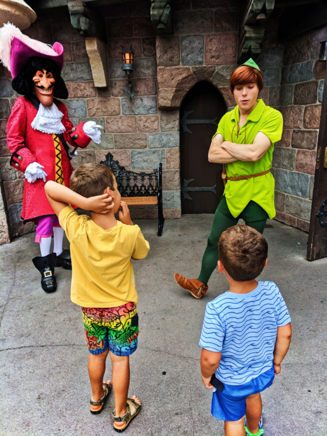 meeting Peter Pan and Captain Hook – two totally awesome guys that took lots of time to chat/hang out with the kids