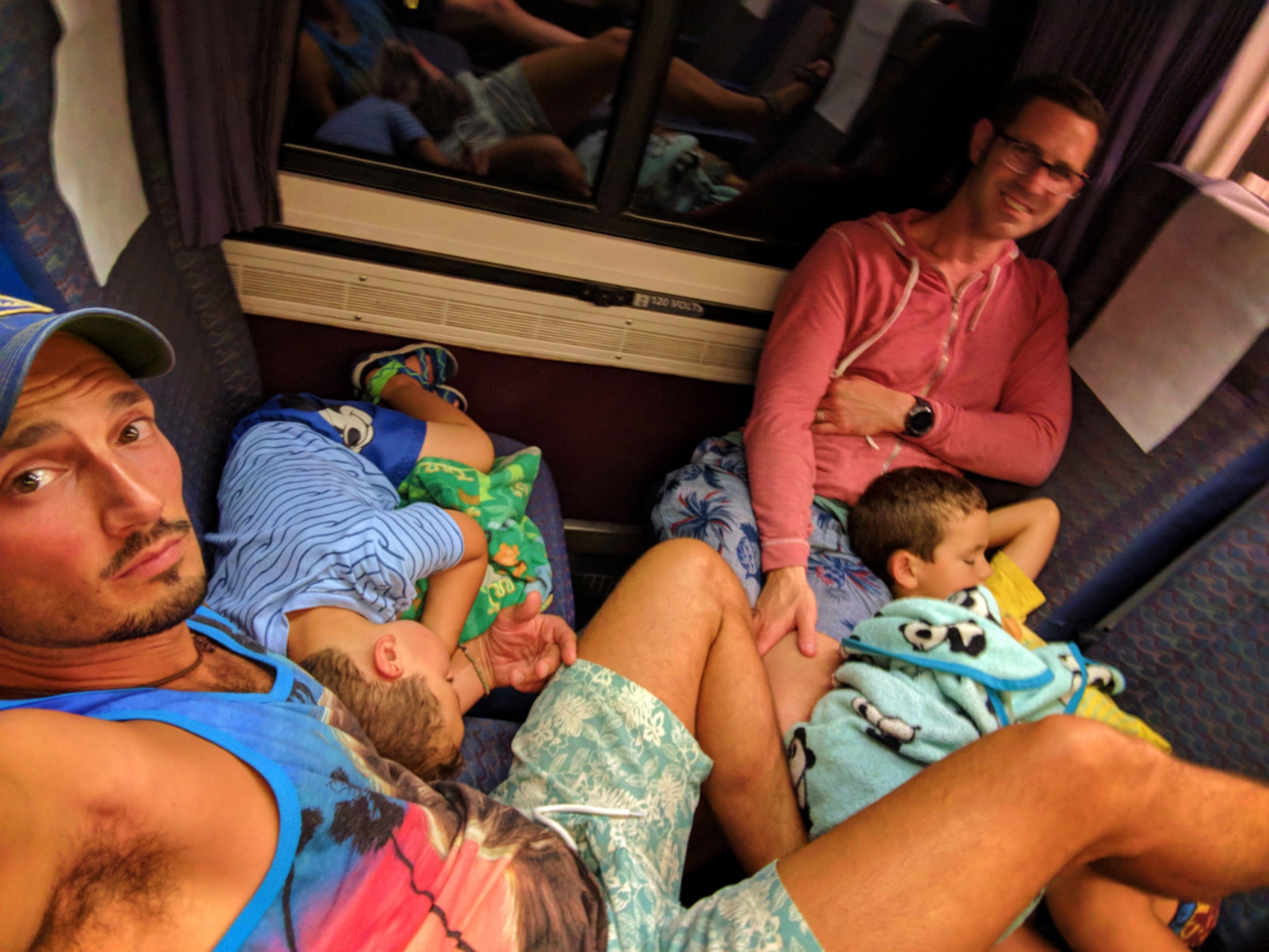 What made our evening train ride doable with kids was having snacks at the ready, as well as blankies and snuggly friends available, as it was clear they’d be falling asleep on the train. With a slight delay we made it to San Diego on a Friday night in just over two hours. Well worth the cost and the convenience. When we arrived at the vintage Santa Fe station we grabbed our Lyft and headed for our hotel, the Hotel Indigo San Diego Gaslamp. It was good to arrive and fall asleep.