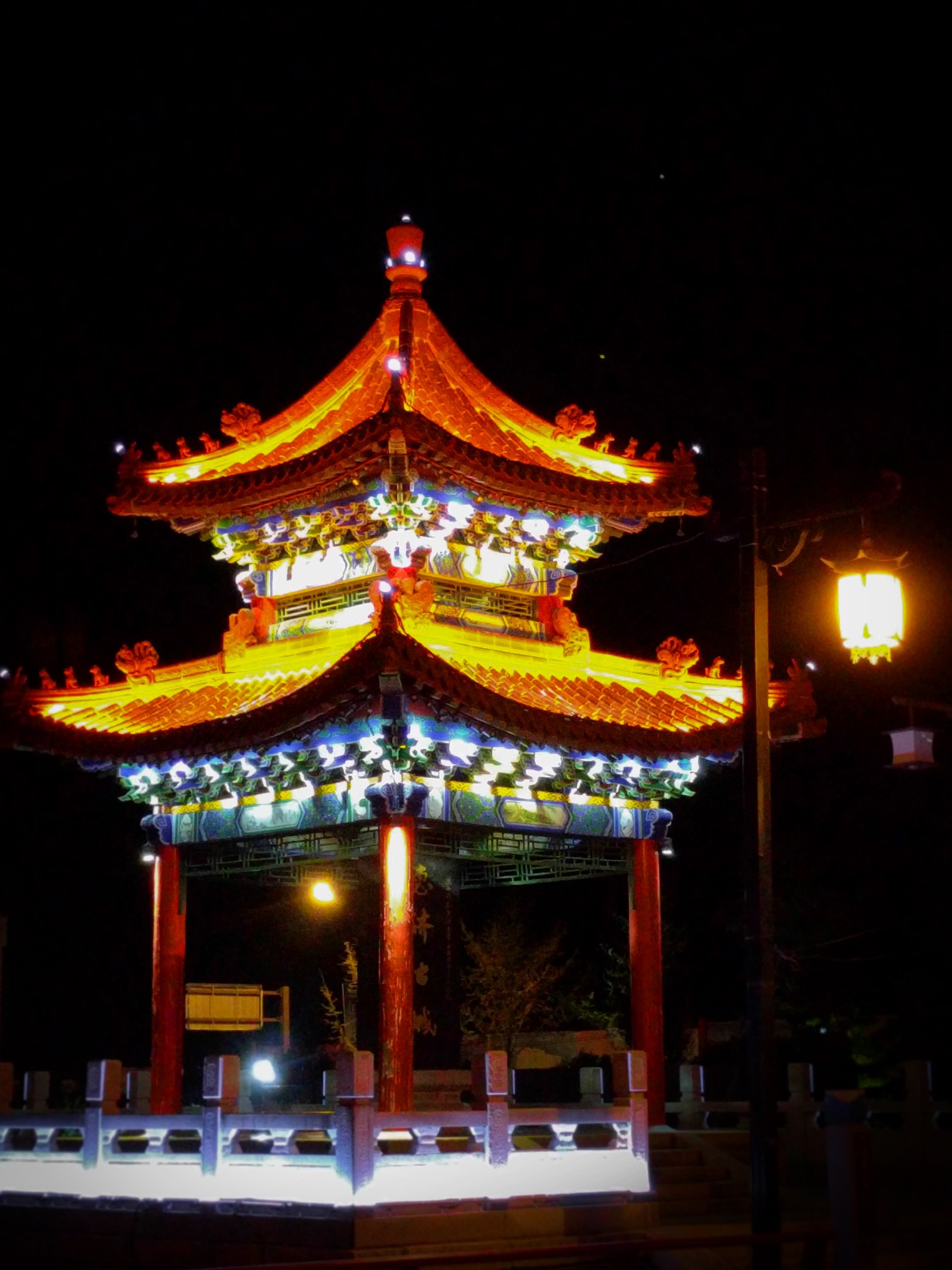 Baoji is the only town besides Las Vegas that I’ve visited where the sidewalk glows and sparkles. And where the fountains that run through the center of town do a show on a schedule. And where there are lights moving all around you… except when you step off the main drag and it’s just dark.