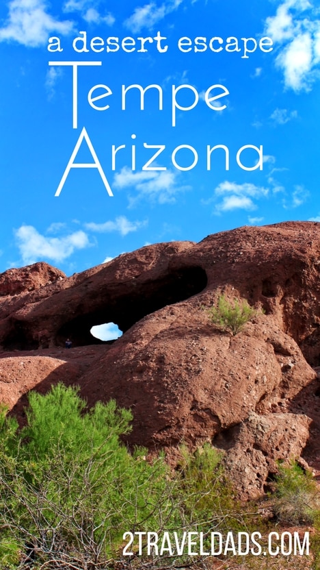 We did two hikes in Papago Park: Hole in the Rock and Double Butte Loop. Hole in the rock was really easy and is kind of a must if you’re doing Tempe with kids. The short half mile loop takes you around some rocky outcroppings and up the backside of the formation. Erosion has left several large holes and caves in the face and it’s really cool (for adults and kids). Spending time at Papago Park, either hiking or picnicking, is one of the best things to do in Tempe any time of year.