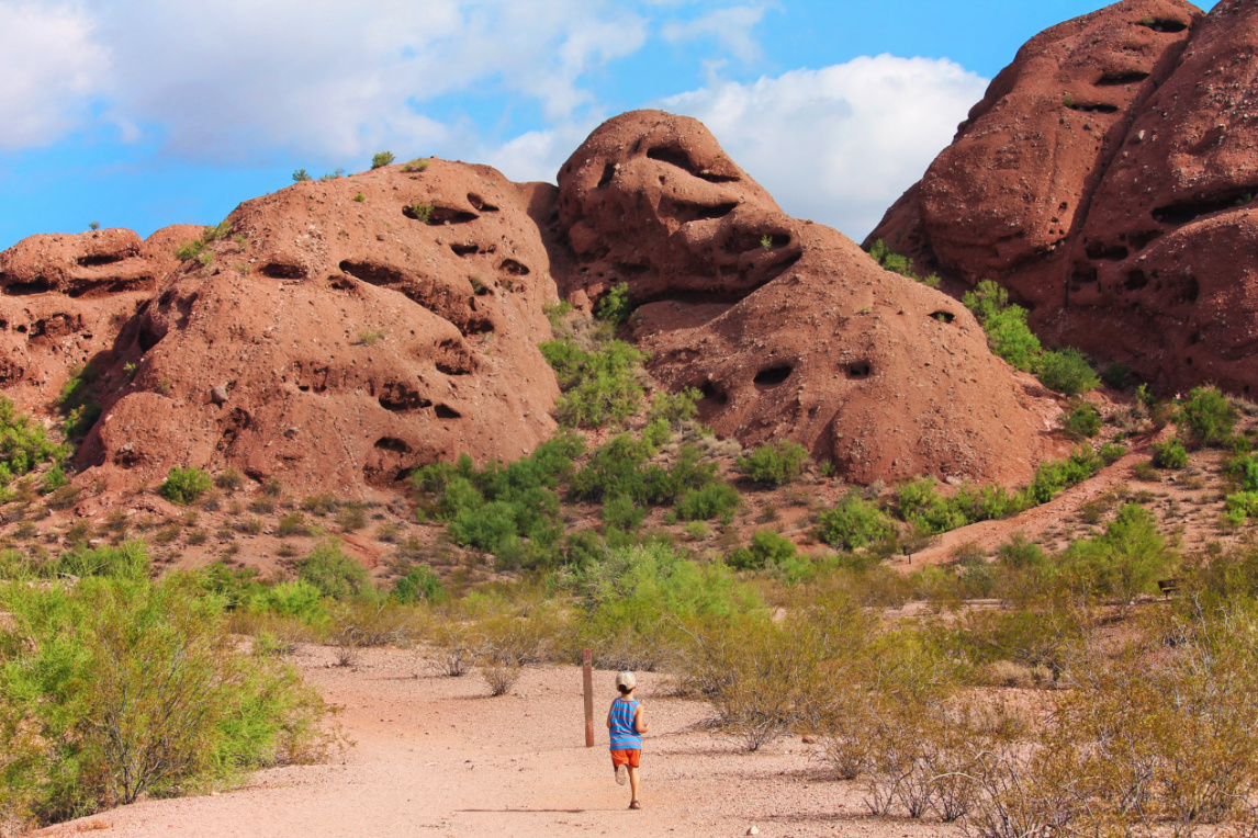 Taylor Family hiking at Hole in the Rock at Papago Park Phoenix Tempe 10