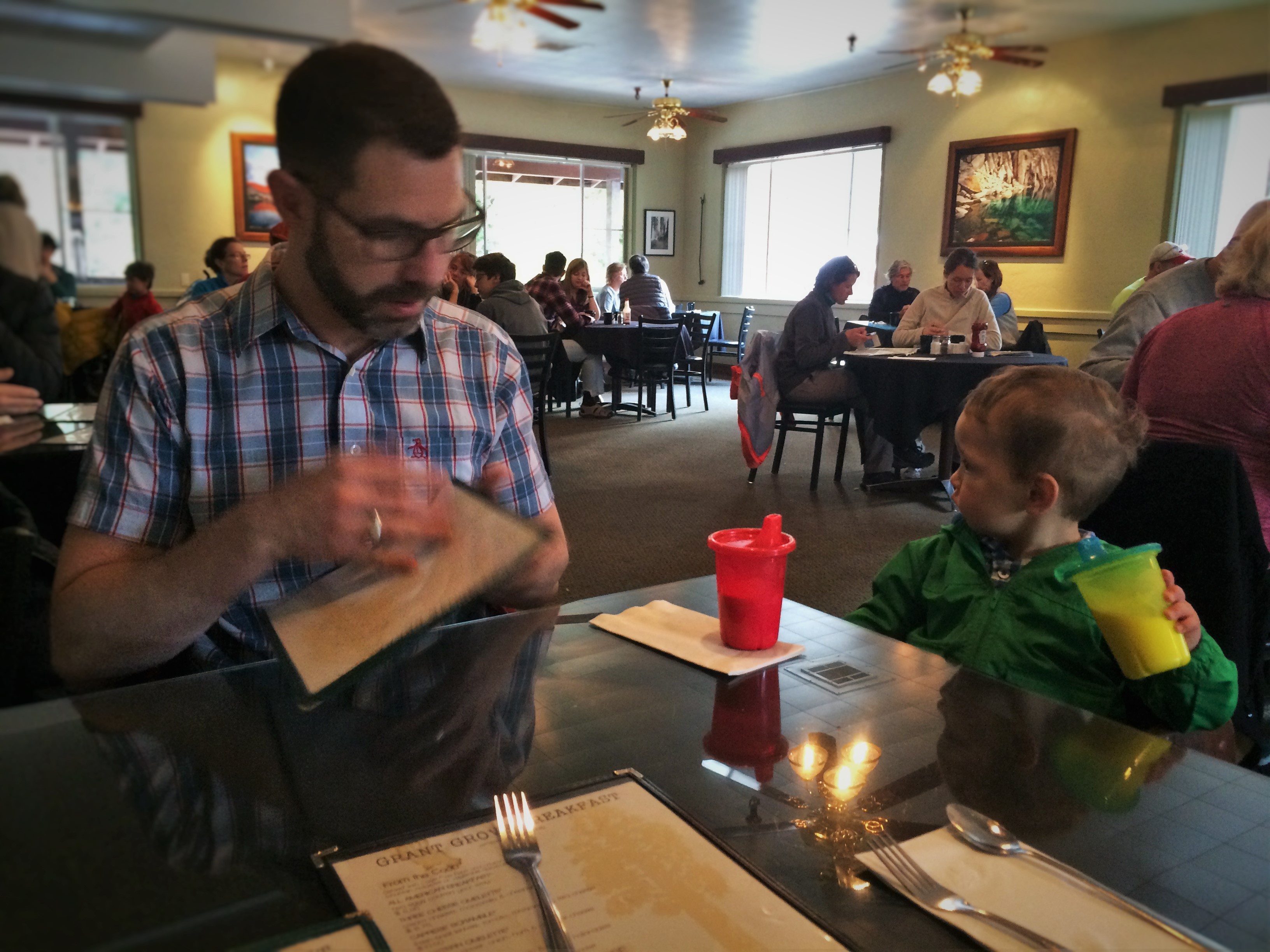 Regarding the overall experience of the Grant Grove Restaurant, we can say that the service we had was great and Oliver, our oldest, even invited our server on the rest of our trip with us. As far as cleanliness and atmosphere, it needed more that a surface wipe down and almost anything could’ve made the dining room more attractive.