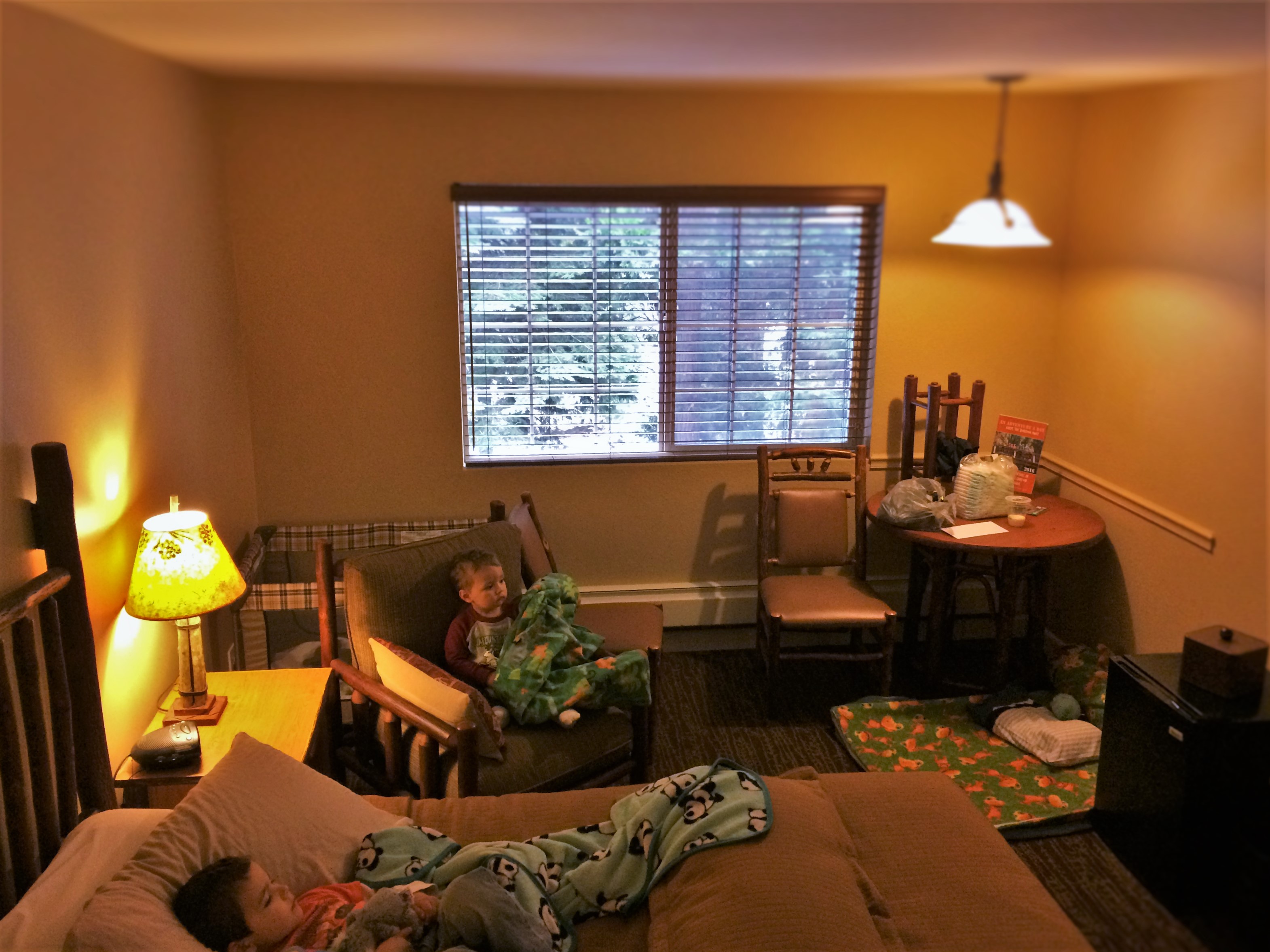 Upon arrival we were given a nice room with two queen beds, which would’ve been great… if we didn’t need to fit a crib. As it was, the only option for where to place the crib was right against the heater. No problem though, as we went to the front desk and they moved us into a room with a king bed and more floor space. True, we were down a bed now for our oldest, but we’ve had to make a nest for him before… and we did it again.