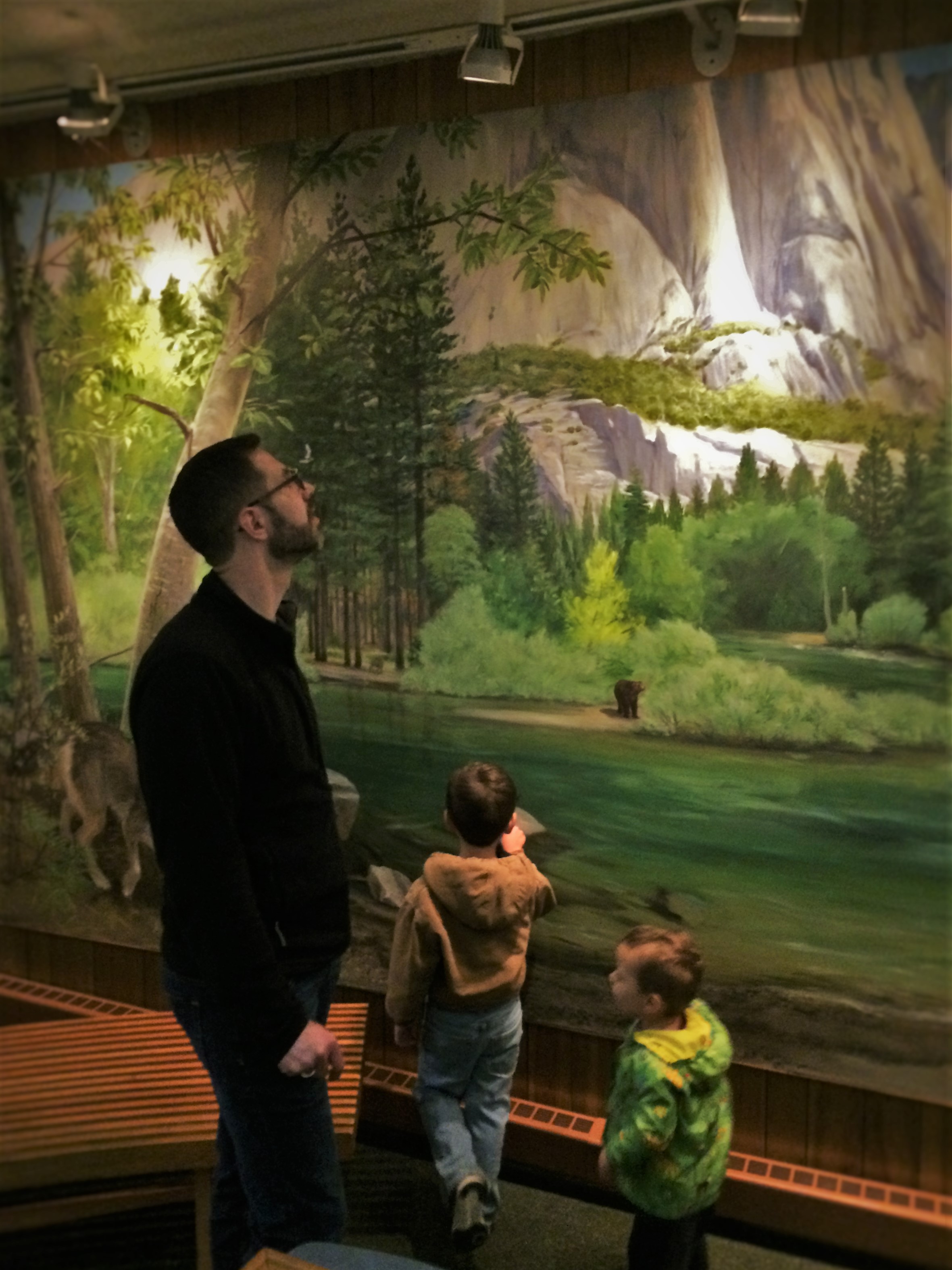 The Grant Village Visitors Center is a cool one. We were able to get our National Parks Passports stamped and then learn about Kings Canyon National Park and the many things we didn’t get to do because of the stinkin’ stupid &*$%#& snow. We did very much enjoy learning about the wildlife and the gem of the Visitors Center… the MURAL ROOM. OMG. Have you ever let a toddler run free in a room that’s 100% mural with sound effects? It’s the best and most happy happy joy joy experience. We loved it!