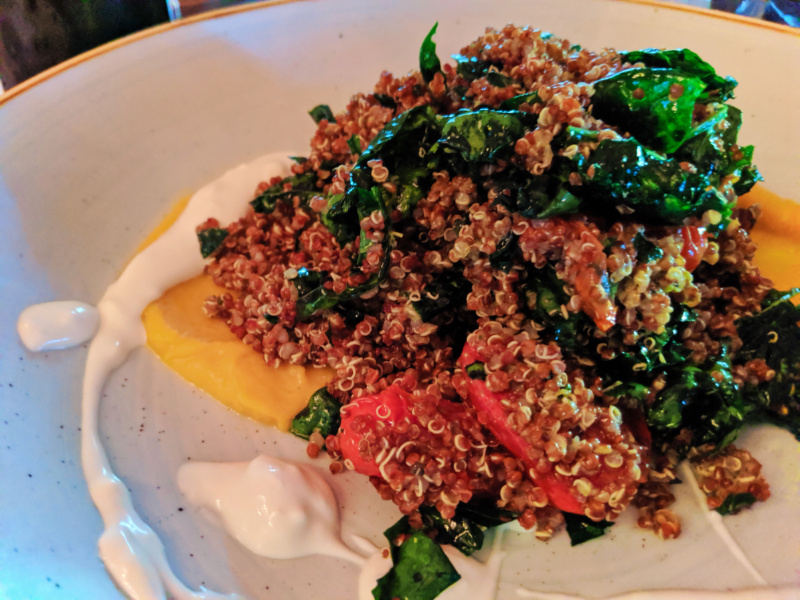 For me, I LOVED the vegetarian options, giving a nod to the diversity of travelers visiting Big Sky. Yes, the menu is still meat-heavy, but the chef has some sharp skills around preparing vegetables and grains in an interesting way. Kale and creme fraiche: who knew? Oh, and the cocktails are great also.