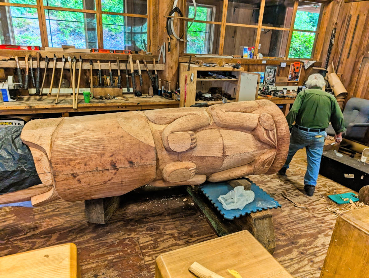 Master Totem Pole Carver at work in Saxman Native Village Ketchikan Alaska 1