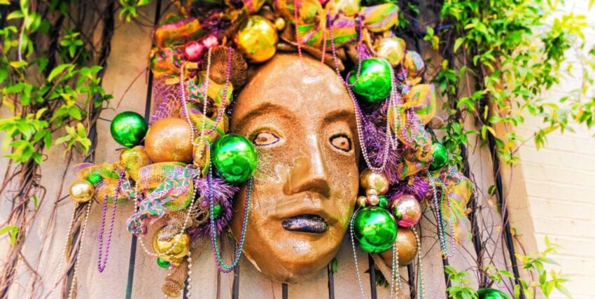 Decorated Mardi Gras mask at Carnival museum Mobile Alabama 1