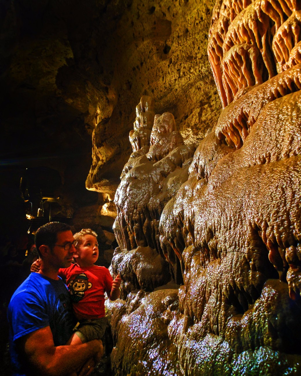 On two previous trips we’ve had to cancel caving plans due to height/age restrictions within the caves. Our youngest had to miss out on Oregon Caves National Monument and others, but not here! Cave of the Mounds is open to anybody who’s able to walk through the paths and stairways themselves.