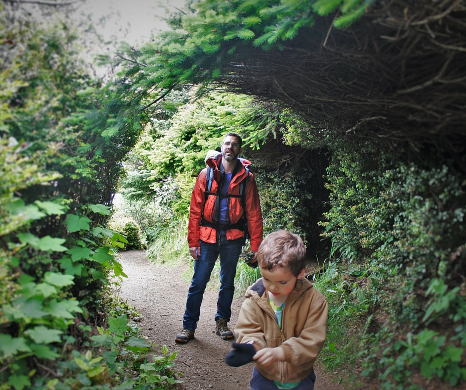 The path around Trinidad Head is steep but smooth. It’s not stroller or wheelchair friendly in the slightest, but it’s doable with kids. There are several spots to stop along the way, with benches at viewpoints and fun bunny trails you can crouch down to wander through. Really, it’s kind of the perfect trail to do with kids. We even got to see some beautiful, huge garden snails crossing our path. It’s always fun to see little things in nature and kids are typically thrilled with them.