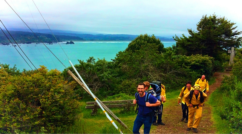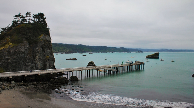 On the way back down the Trinidad Head trail we encountered a pack of firemen training on the path. Yep, that’s how steep and tiring it is. We let them do their thing and we barreled down the hill. It was great to have a view of the town of Trinidad on the way down. The pier in the harbor was really interesting with the most beautiful water below. Chris thought it was like the town from the movie Popeye.