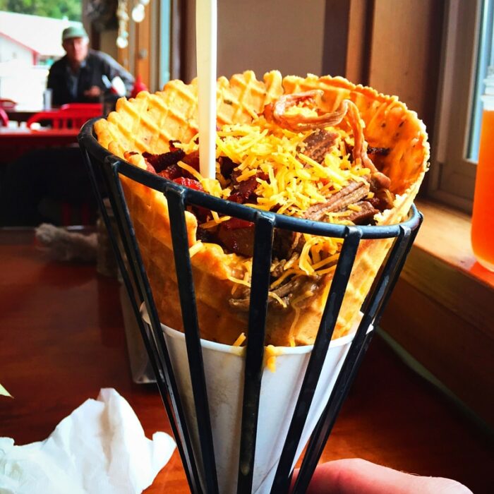So the Lighthouse Cafe had lunch stuff and blah blah blah fish and chips, and blah blah blah adult root beer (#truestory), and blah blah blah mashed potato cones. Wha?!?!?! Yes, that’s right: the most amazing mashed potatoes with all kinds of incredible toppings served up in a savory ice cream cone. Truly, this was the more genius thing we ate on the whole trip, and that includes the totally awesome tempura asparagus from the Tenaya Lodge at Yosemite. The mashed potato cone was truly life changing and falls into our top five best vacation foods we’ve ever eaten.