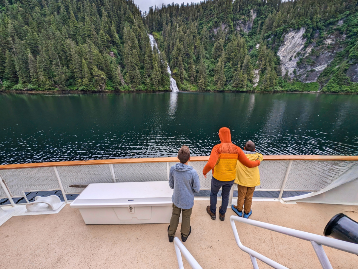 Taylor family on UnCruise Wilderness Legacy at Red Bluff Falls Inside Passage Alaska 1