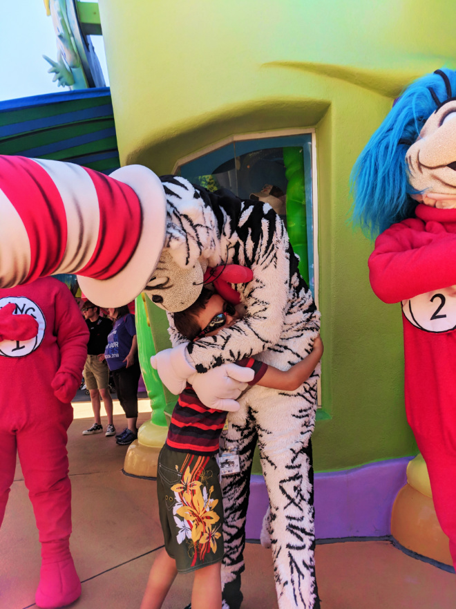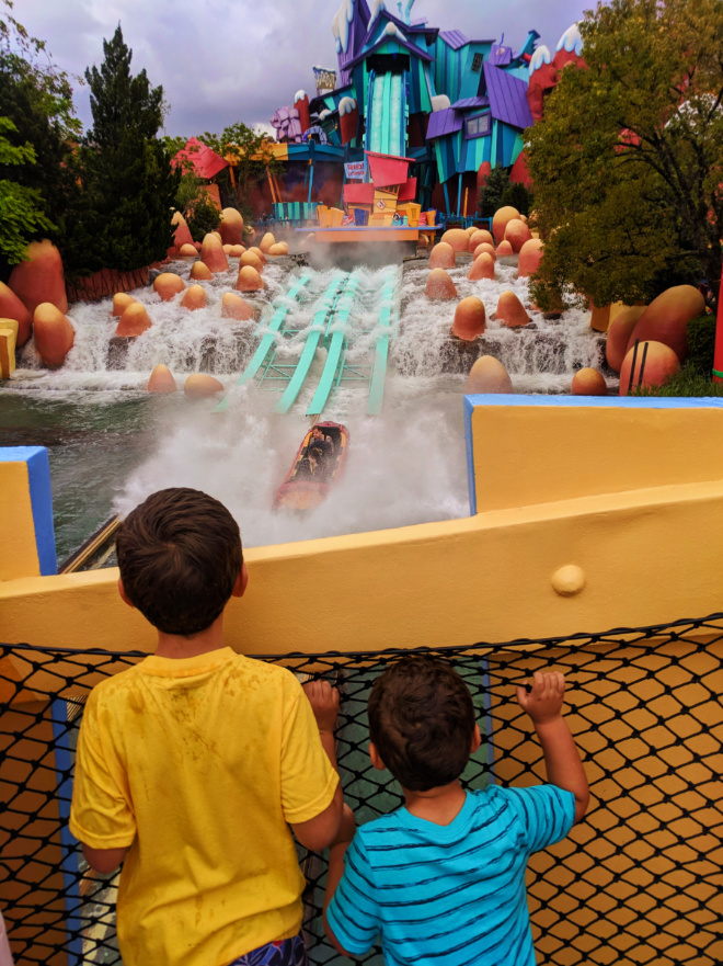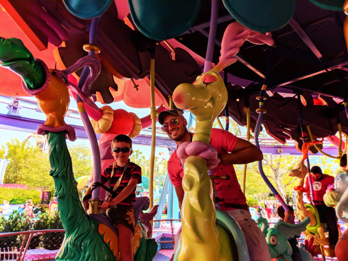 Note: the Cat in the Hat attraction is intense. While the story is great and the attraction is very well laid out, for small kids (and me) it can be sensory overload like they may not have experienced before. Both our boys buried their heads in their hands and couldn’t watch. Not scary, but A TON going on.