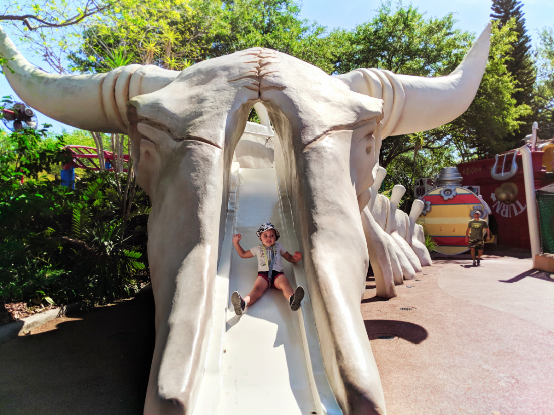 Tip: if you’re looking to get out of the sun for a while, Camp Jurassic is fully shaded and great for cooling off without getting soaked on a water ride.