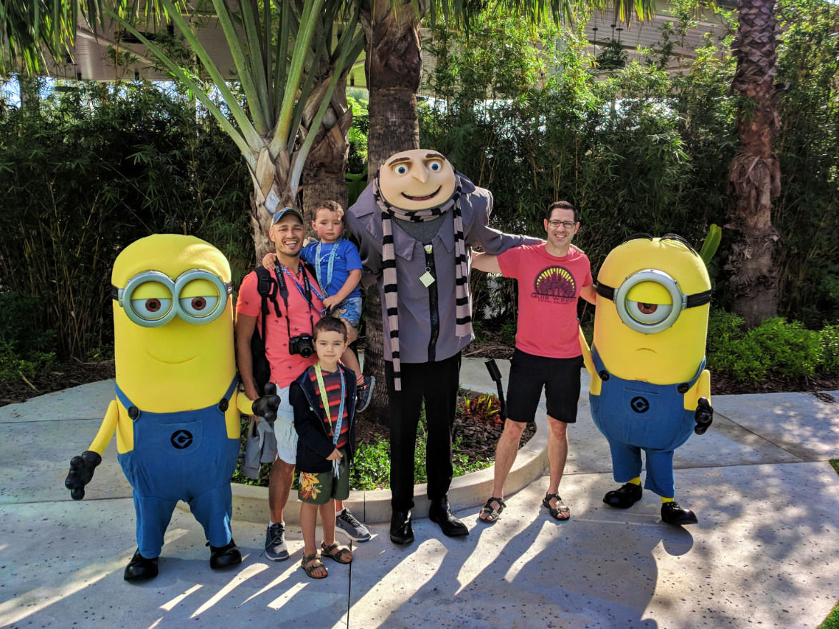 On certain days (check with the front desk for availability) at Loews Sapphire Falls Resort there is a lovely yet despicable breakfast served… WITH MINIONS! The Despicable Me Character Breakfast was really fun. There were, of course, Minions and Gru and the little girls and pancakes and breakfast treats… The boys loved it, albeit they were a bit cautious about the Minions at first.