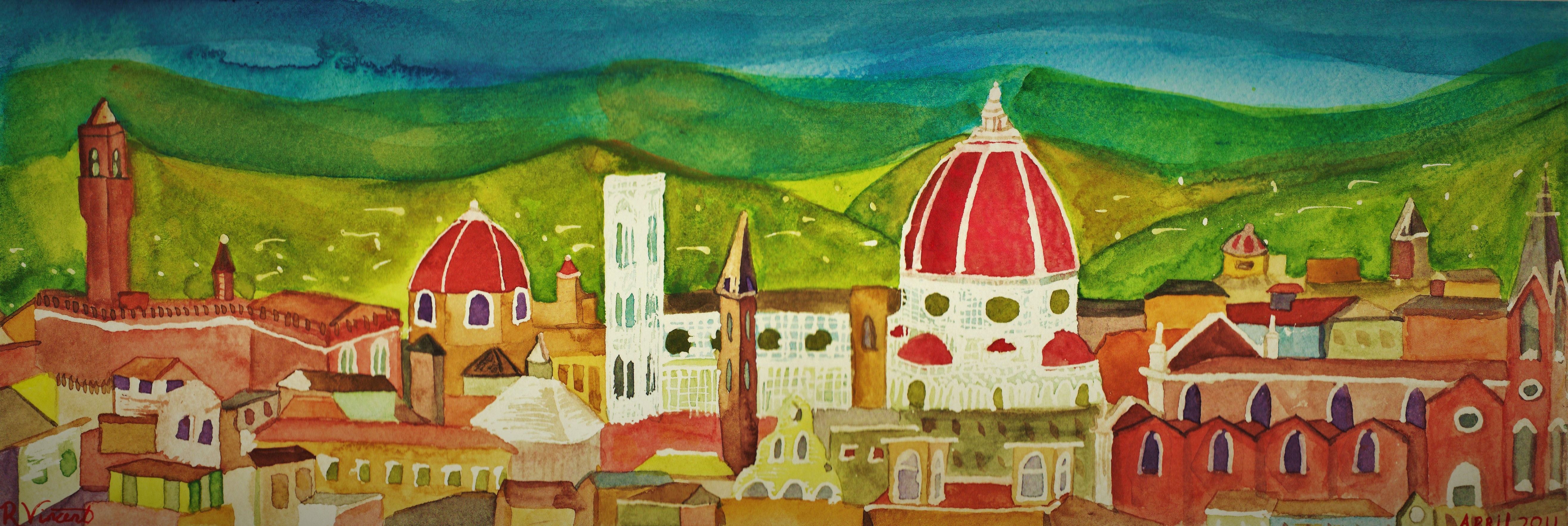 Watercolor Florence from Piazza Michaelangelo (2)