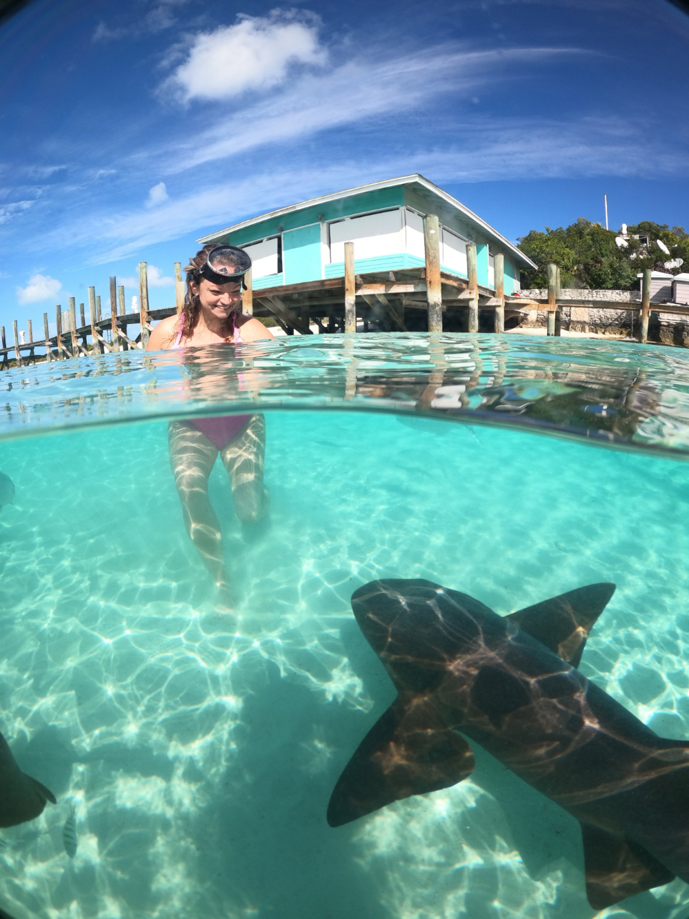 Angie swimming with Nurse Sharks in the Bahamas