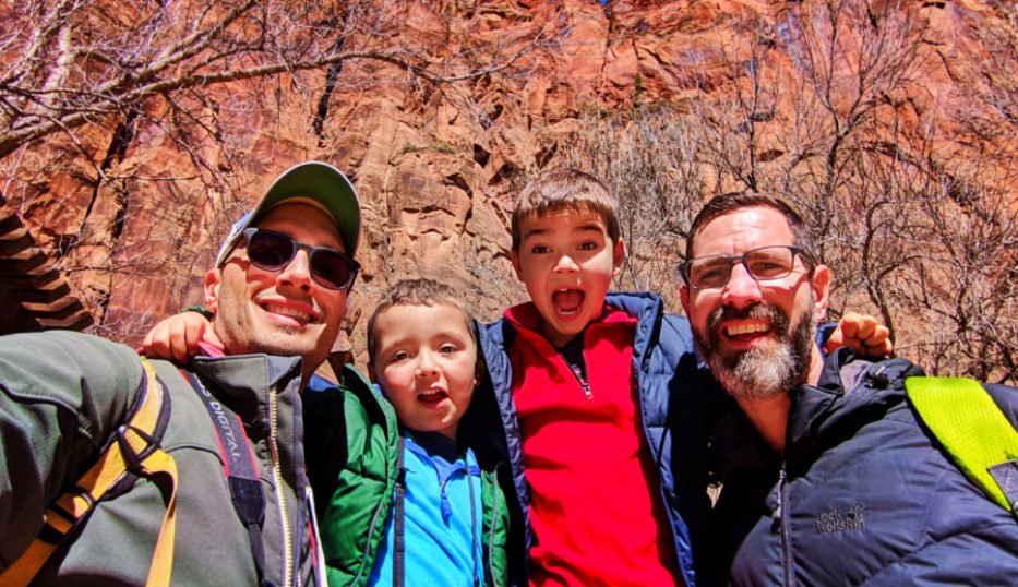 Full Taylor Family at Red Rock walls of Zion Canyon Zion National Park Utah 1