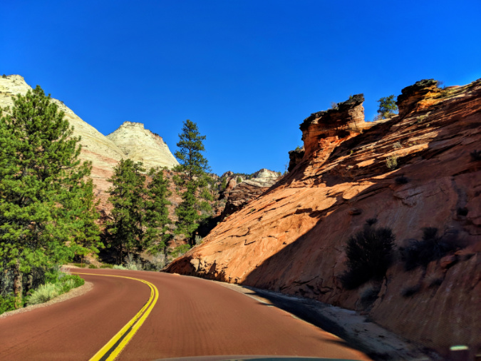 Road into Checkerboard Mesa Eastern side Zion National Park Utah 1
