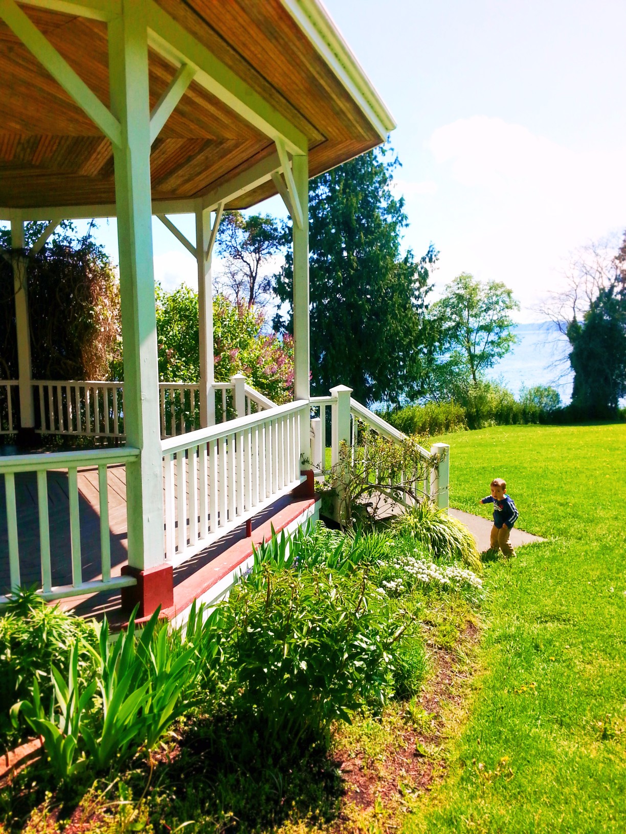 Our favorite feature of Uptown Port Townsend is Chetzemoka Park. Situated at the north end of the Uptown District it is a truly Victorian park designed at the end of the 1800s. It has exactly what you would expect of any good park, meaning lots of open play space as well as two separate playgrounds, but then it also has a gazebo for weddings or hanging out in the shade, it’s got a cookout area and picnic tables, there is beach access if you’d like to walk down to the water, and then there is also a fantastic Victorian garden. Chetzemoka Park is a gem.