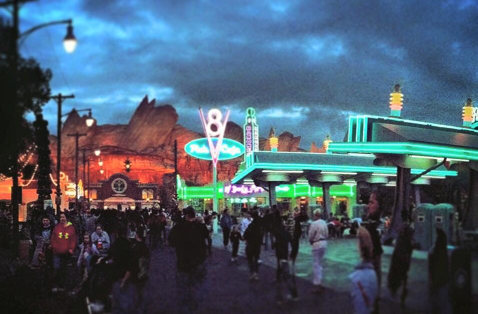 Be at the entrance to CarsLand AT SUNSET to watch the neon light up. Pure magic.