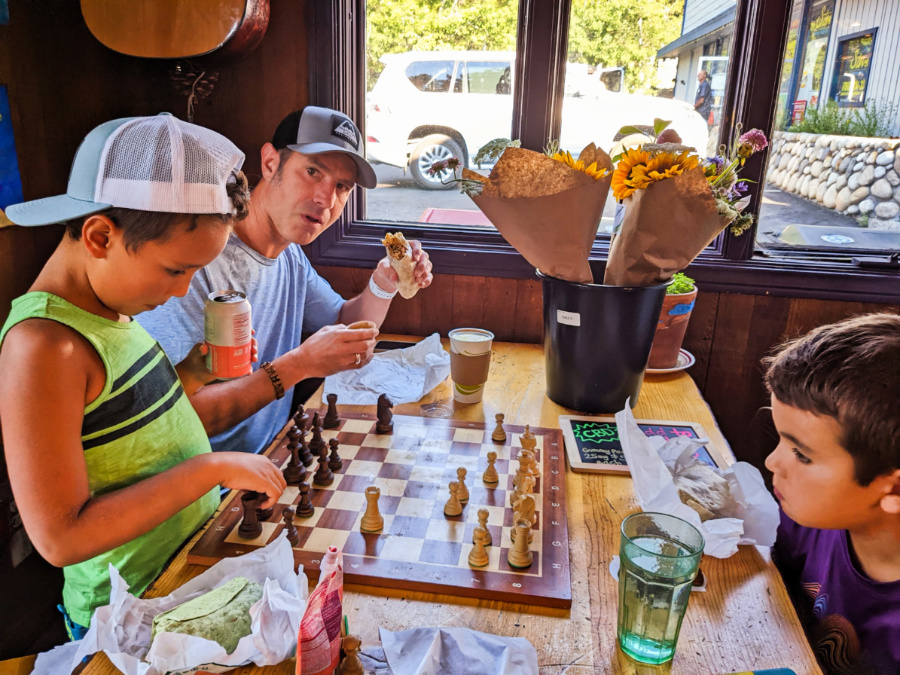 Taylor Family Playing Chess at Stellar Brew Cafe Mammoth Lakes California 1