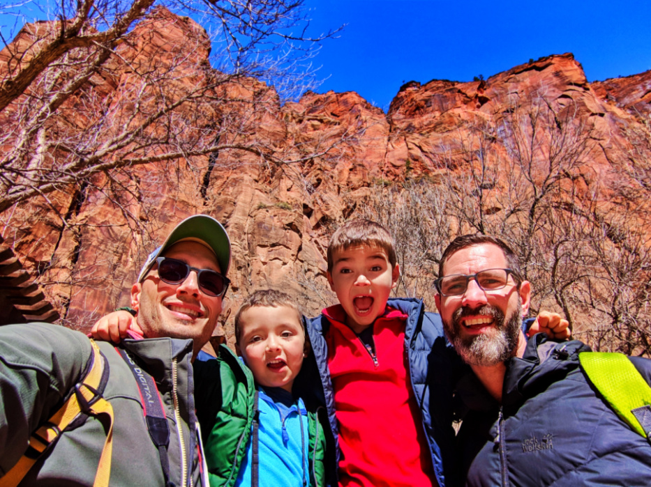 Full Taylor Family at Red Rock walls of Zion Canyon Zion National Park Utah 1