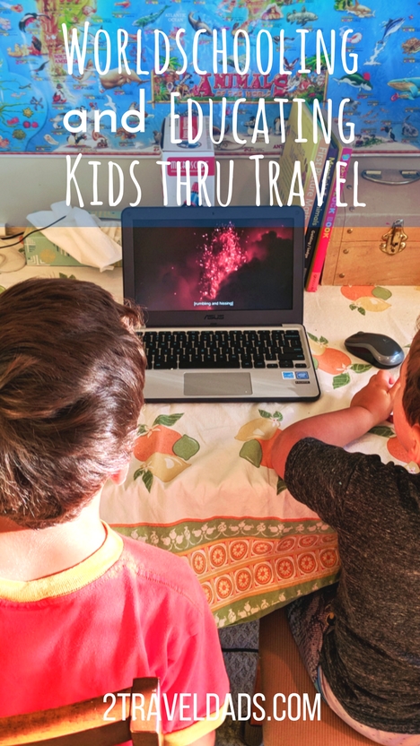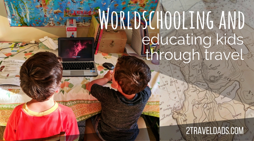 Worldschooling is the practice of homeschooling kids with the added experience of extensive travel, leverageing culture and nature as education. Creating a broad world view while teaching the kids everything they'd learn in public schools. 2traveldads.comWorldschooling means something different to everybody, so we’re going to share what it means to us, why we’re doing it, some of the resources we are using, and what we hope to accomplish through this. Worldschooling has just started for us and it’s already an adventure in itself… And we haven’t even left the country yet.